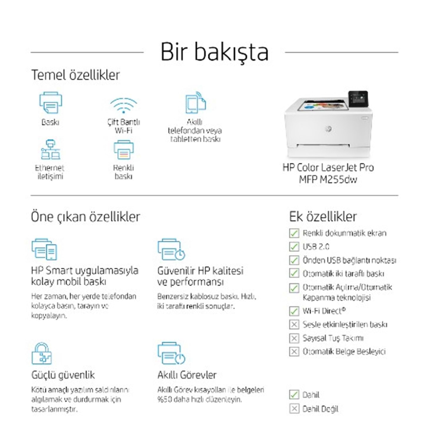 | Baskı Dilleri | HP PCL6; HP PCL5c; PostScript L3 emülasyonu; PWG raster; PDF; PCLm; PCLm-S; NativeOffice; URF |