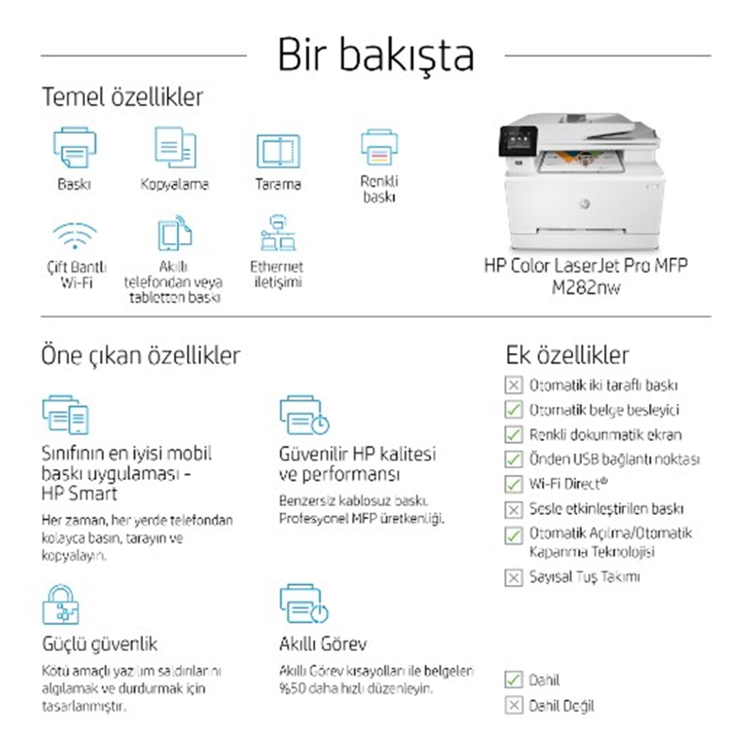 | Mobil baskı | HP ePrint, AirPrint, Mobil Uygulamalar, Mopria Sertifikalı, Wi-Fi Direct |